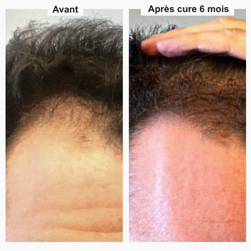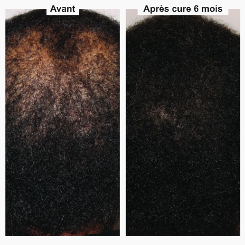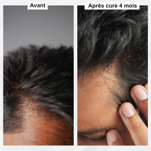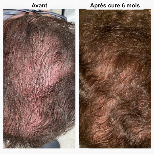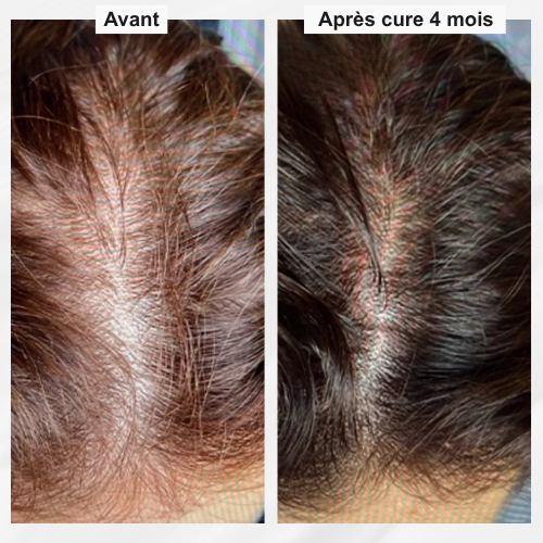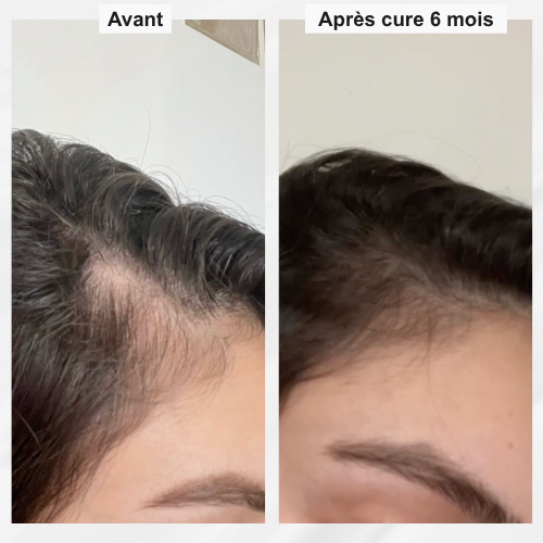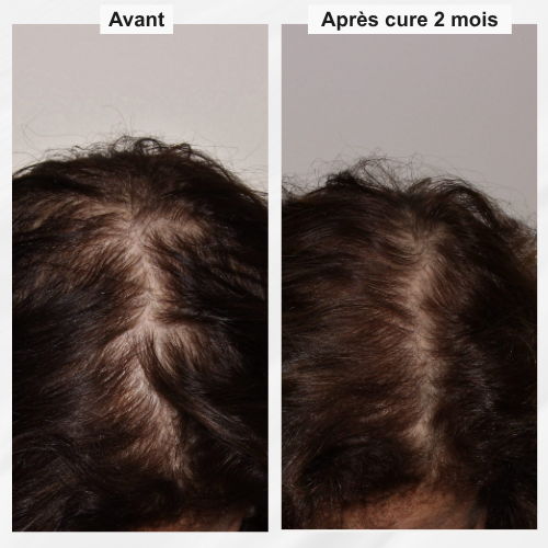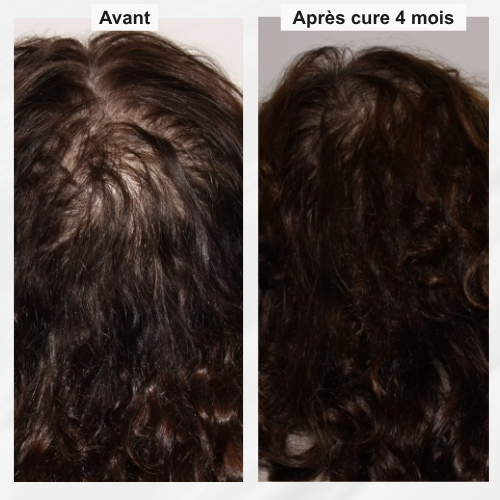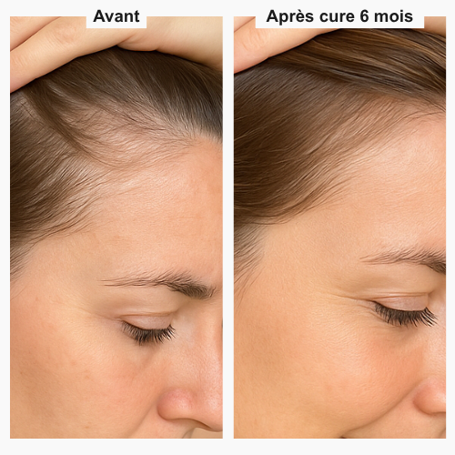 Les premiers effets apparaissent souvent dès 4 à 6 semaines. La chute et la densité des cheveux continuent de s’améliorer sur 3 à 6 mois.